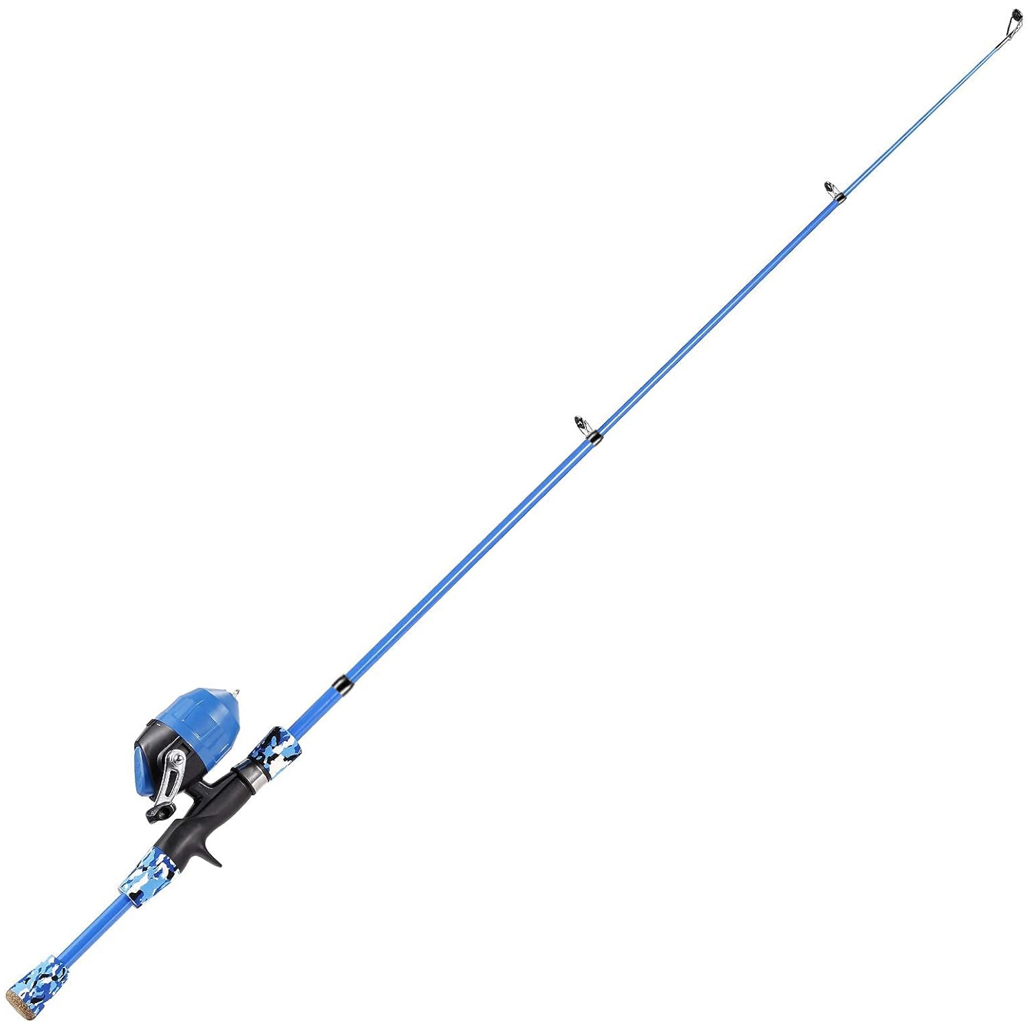 Are you looking for an appropriate telescopic fishing rod and reel combo kit for your kids? Our fishing pole set is sure to arouse your kids’ interest and help them master fishing skills. Features 2 color options(Blue/Pink) and 2 length options(4FT/5FT), an ideal fishing gear for boys or girls aged 5+ years old! The kids fishing rod handle is easy to grip. The push-button style reel is child friendly and spins smoothly. We also offer 1 backup fishing line and 56Pcs baits suited to different fishing situations. The telescopic fishing rod is collapsible and portable enough to carry along with the included travel bag. Thrill them with this kids fishing starter kit and you will see the bright smile on their face!