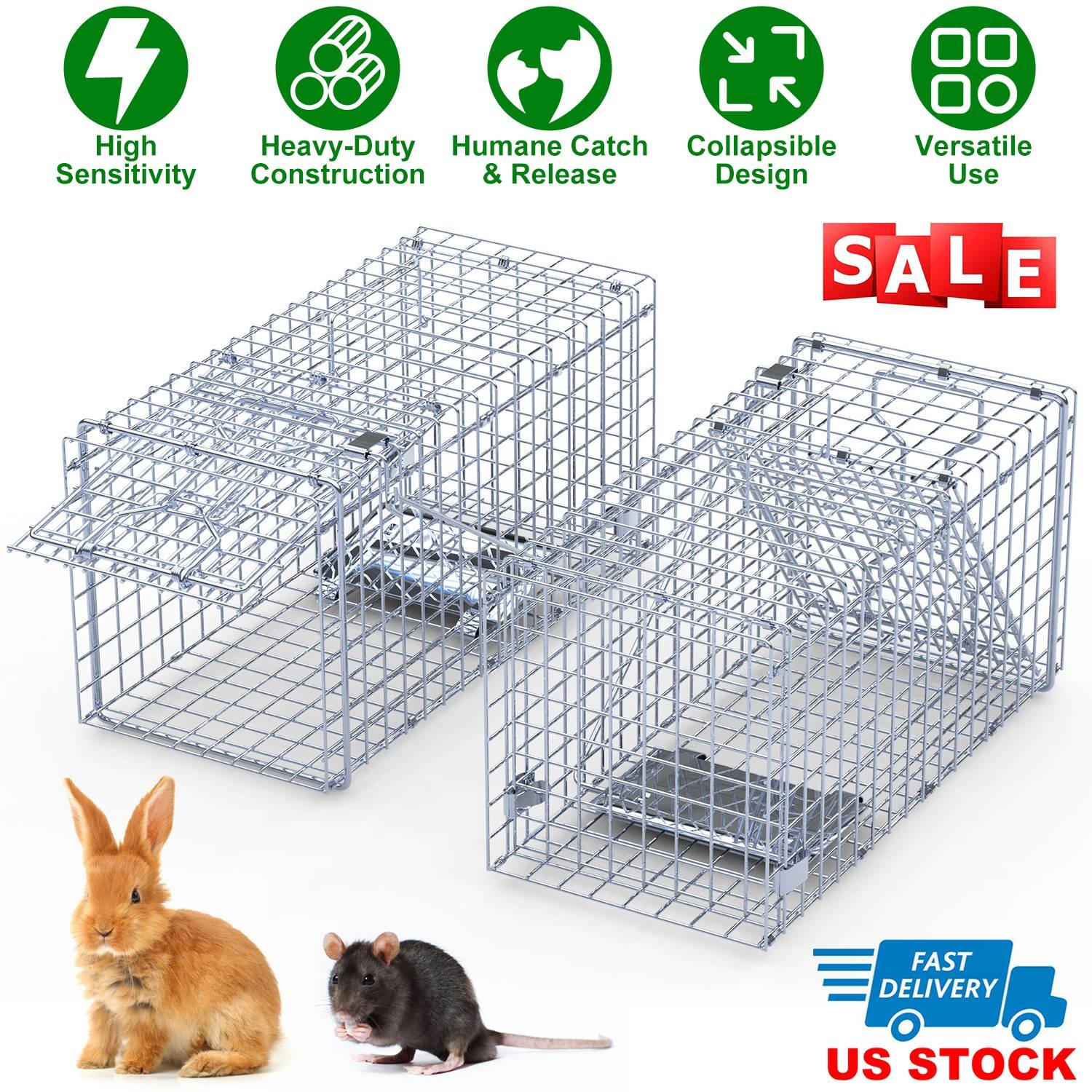 2Pcs 18x8x10In Humane Single Door Live Animal Trap Collapsible Galvanized Iron Animal Cage Catch And Release for Small Squirrel Raccoon Feral Cat Weas