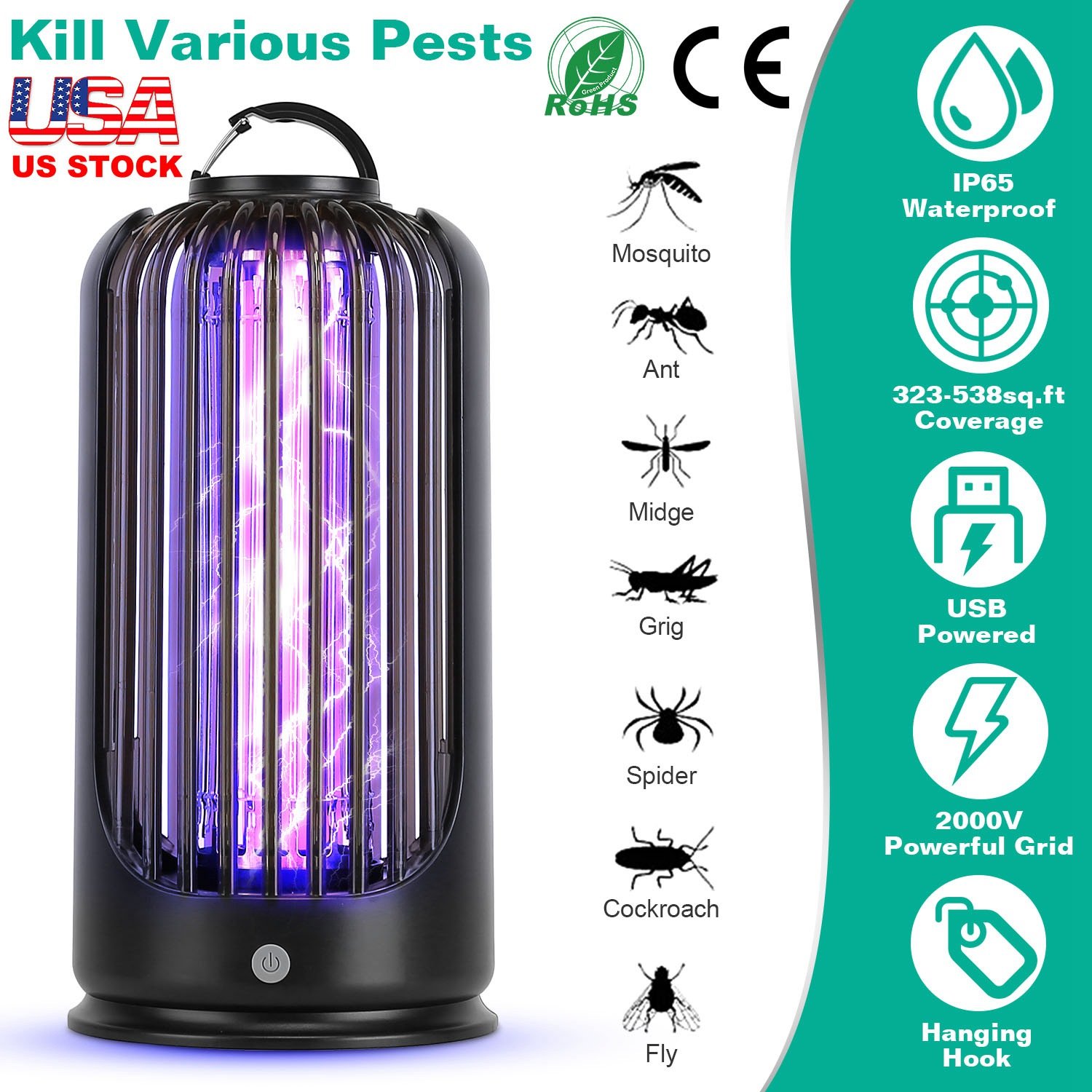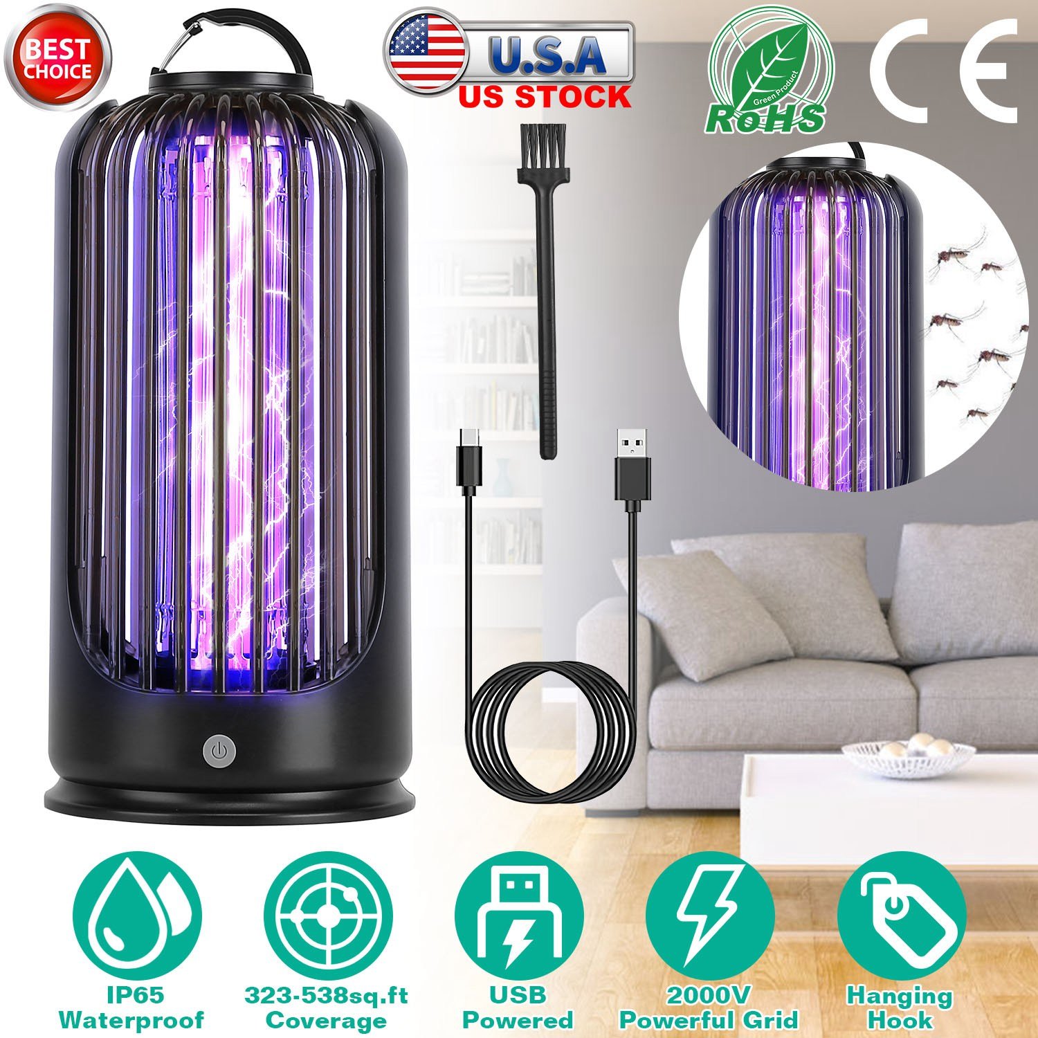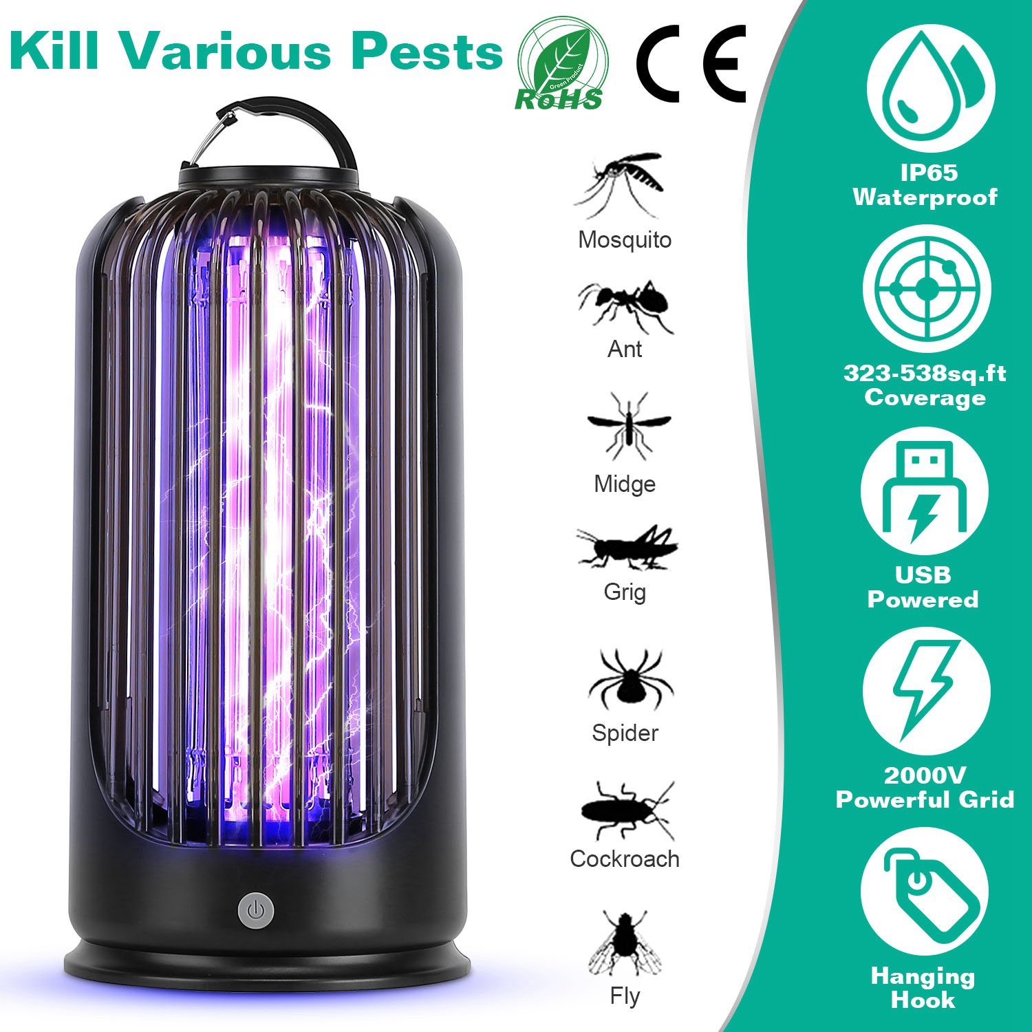 Summer is coming! Are you still trouble with the annoying mosquitoes? Our bug zapper is an optimal solution to protect your family from mosquito buzz and biting with up to 538sq.ft coverage. IP65 waterproof performance allows it perfect for both indoor and outdoor use! Come with a 59in long cable, perfectly solve the problem of outdoor power supply. No chemical, non-toxic, odor free, do no harm to the infants, pregnant mother and pets. Perfect use to protect your family!