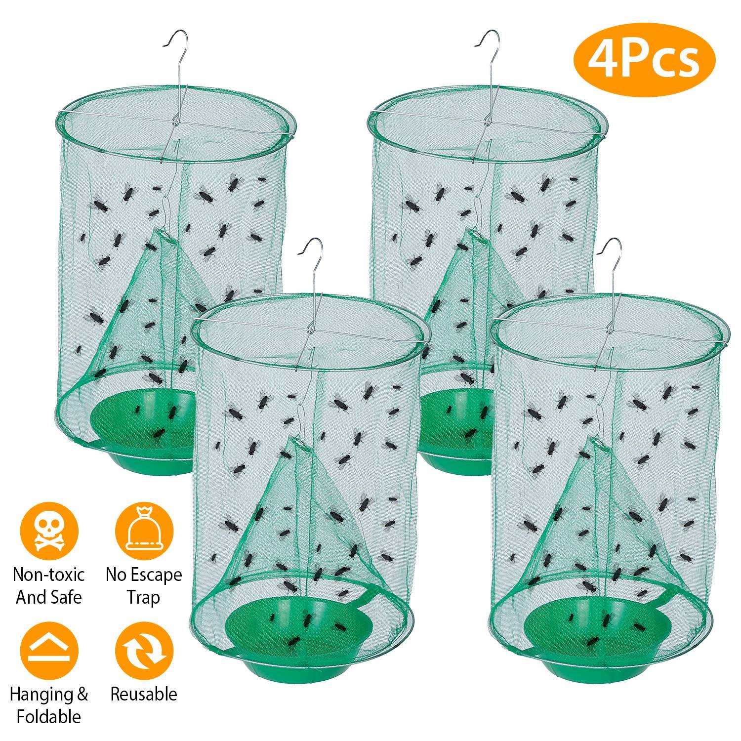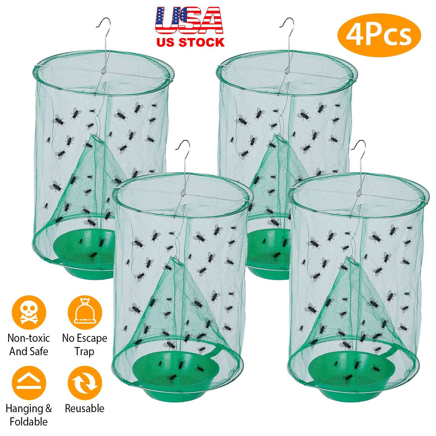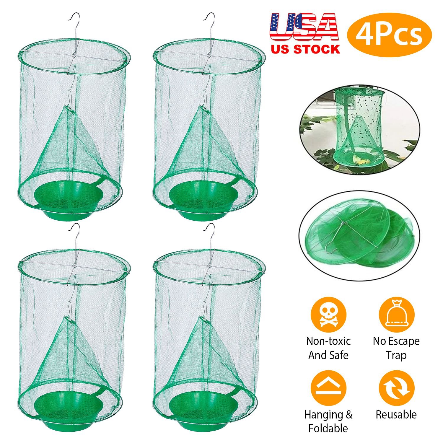 Home > 4 Set Ranch Fly Trap with Bait Trap Reusable Hanging Fly Catcher Killer Cage Net Pest Bug Trap for Outdoor Farm Orchard