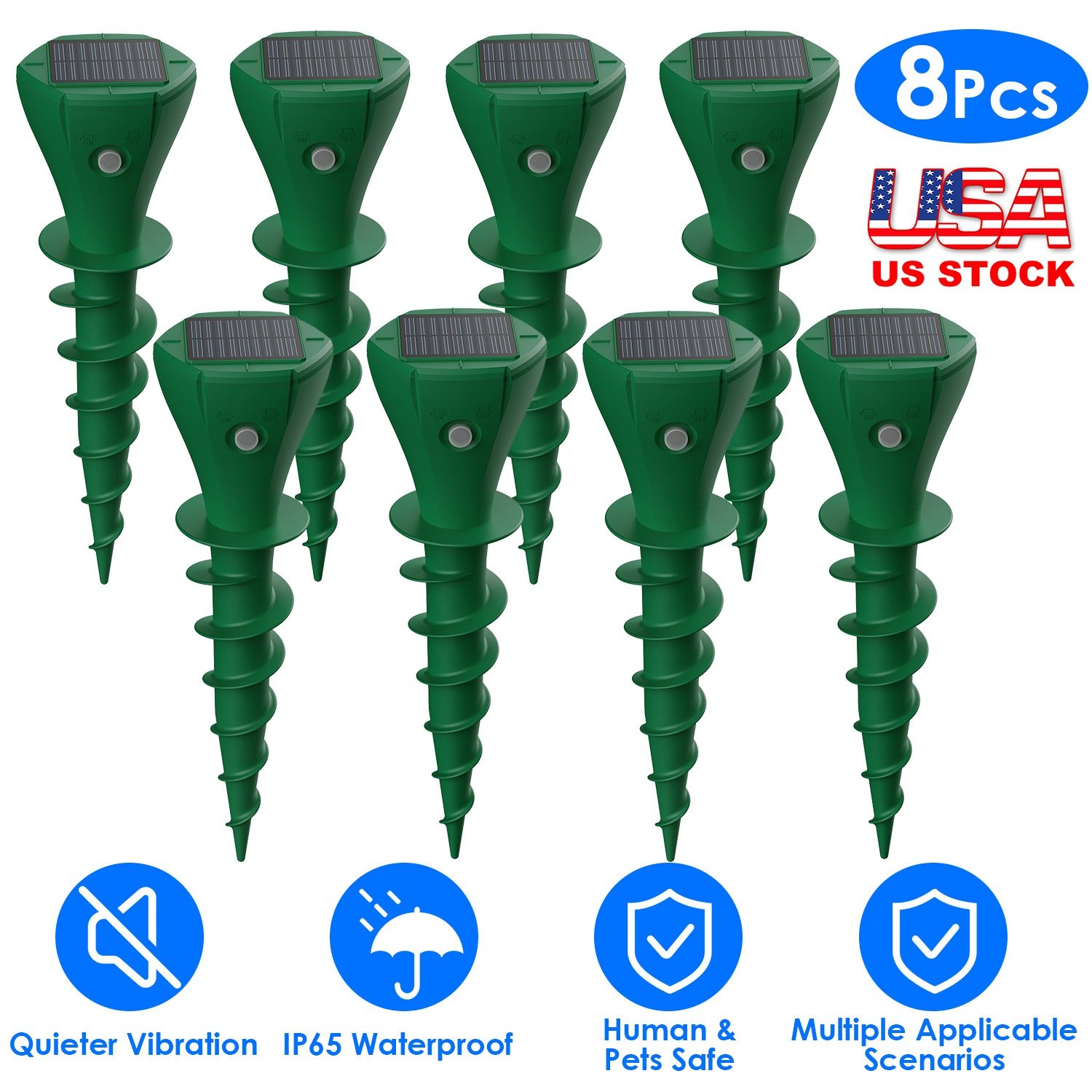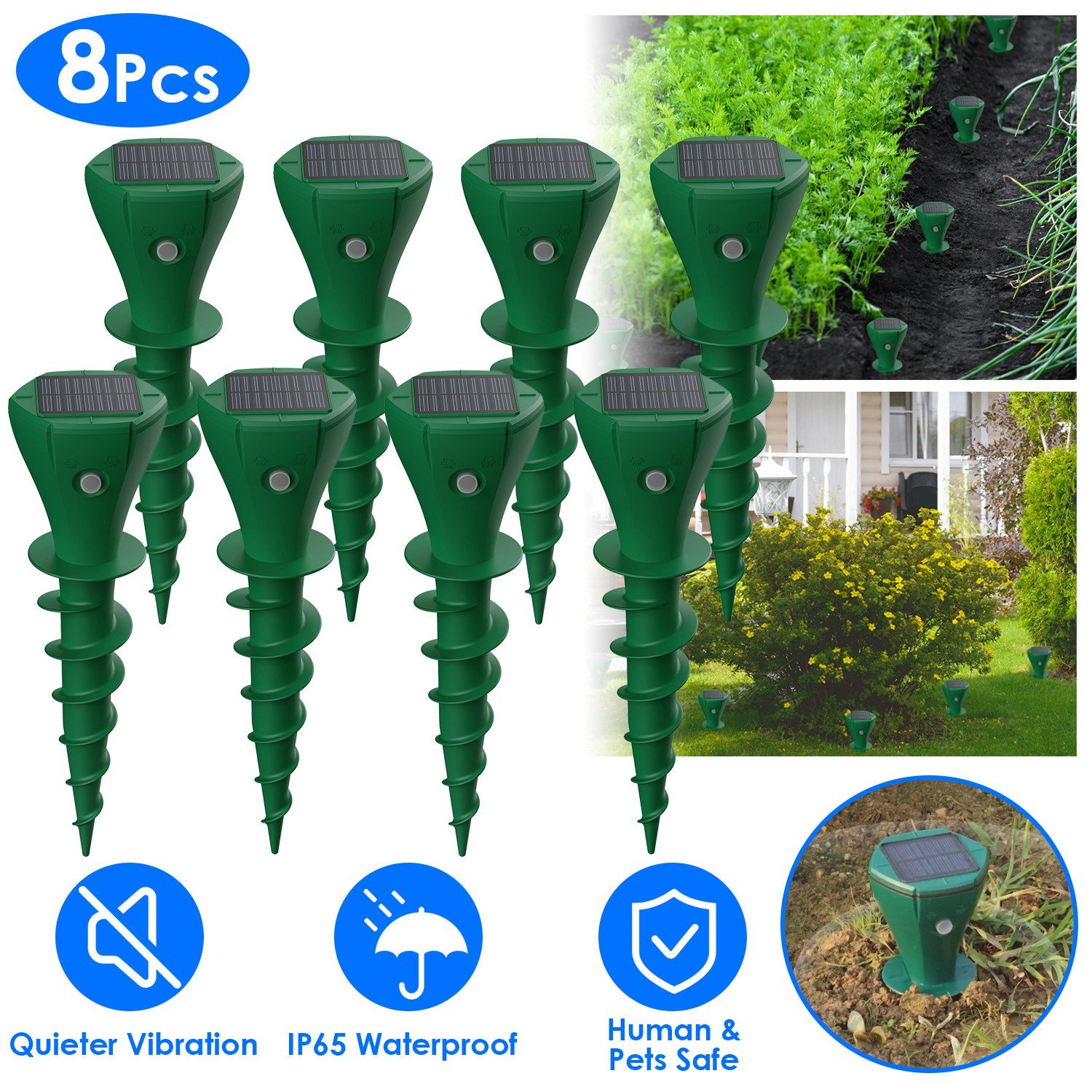 Home > 8Pcs Solar Powered Mole Repellent Waterproof Solar Animal Repellers for Moles Gophers Groundhogs Snakes Voles Outdoor Vibration Stake For Farm Garden