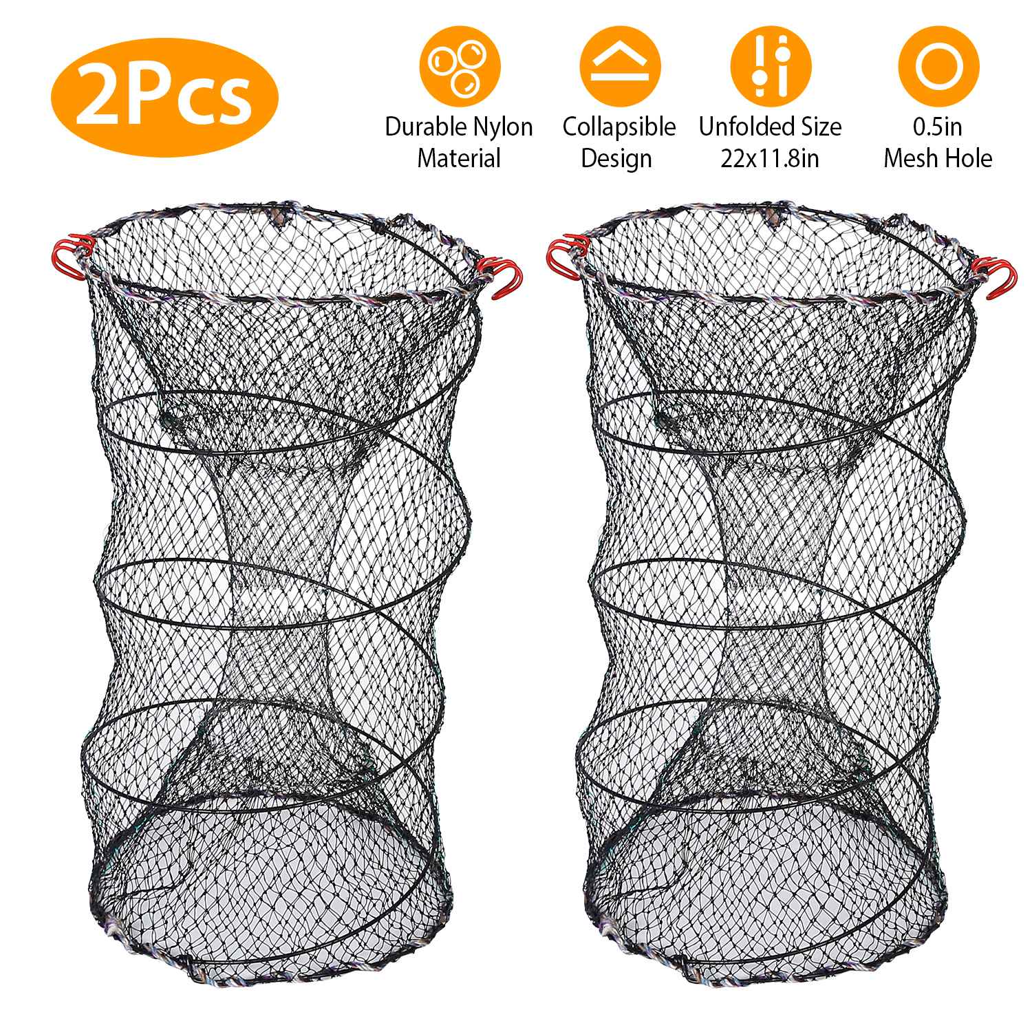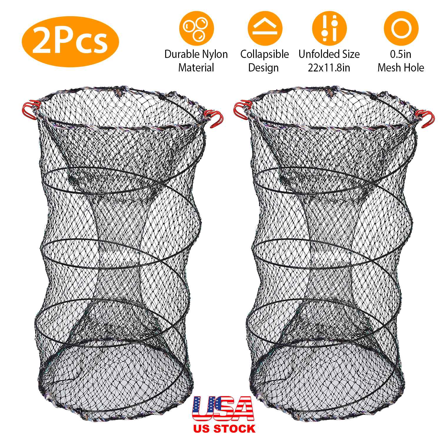 2Pcs Crab Trap Bait Nets Shrimp Prawn Crayfish Lobster Bait Fishing Pot Cage Basket 22x11.8in