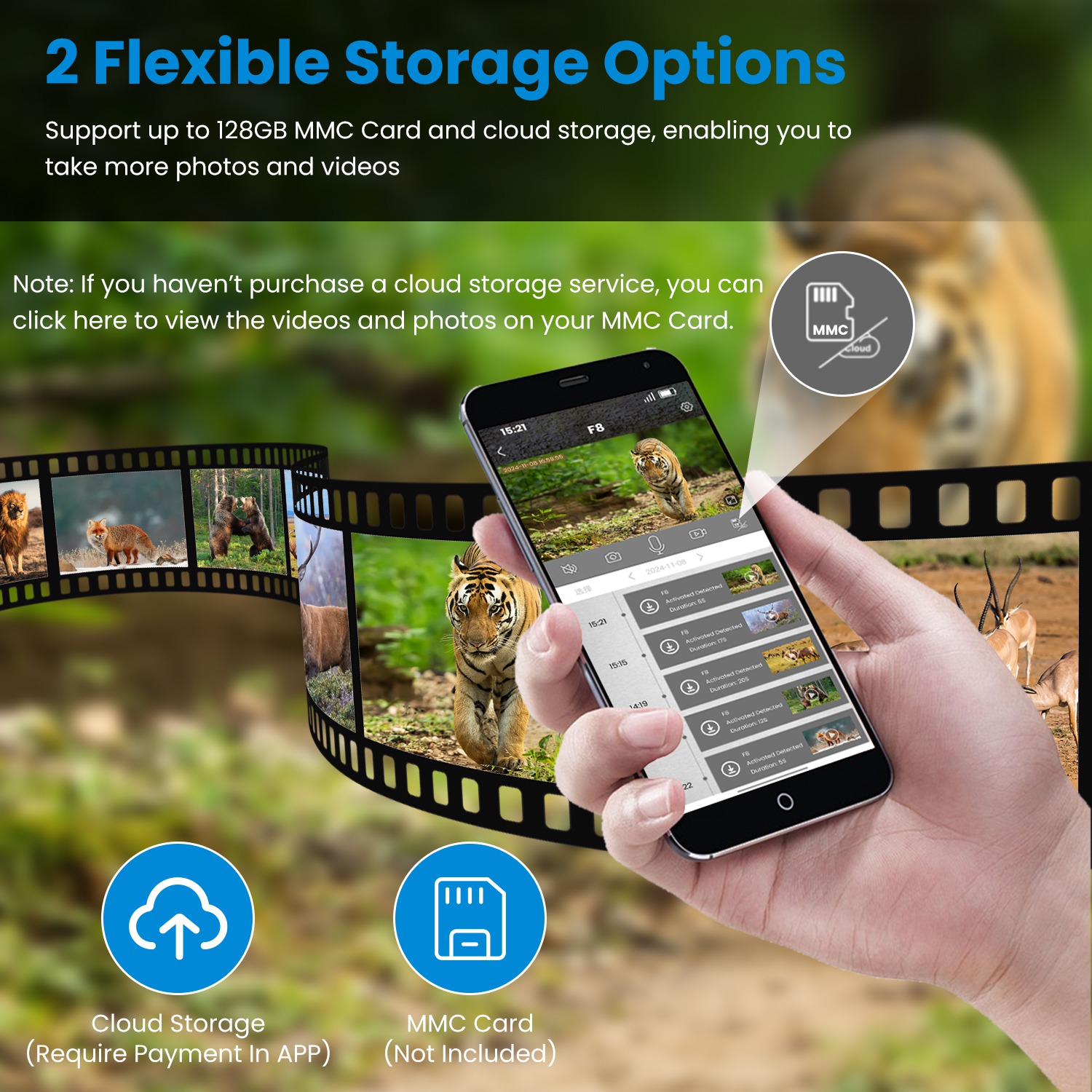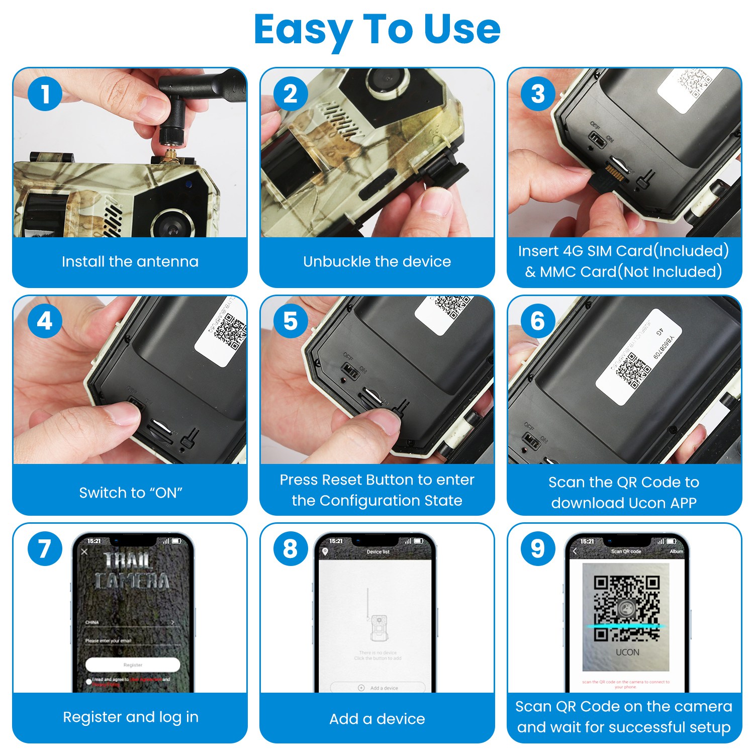 Our outdoor wildlife camera is solar powered and able to monitor 24/7 all year round without the worry of power exhaustion. Also built in 6000mAh batteries for power backup. The non-glowing night vision, IP66 waterproof performance and camouflage appearance make it ideal for forests, farms, ranches, construction sites, cabins, and other outdoor areas. Support convenient APP control, 140ºwide viewing angle, up to 65ft detecting distance, 0.3S fast trigger speed, 4K 30fps filming and loop recording. Also include a 4G SIM card for stable and an antenna to enhance the signal. A useful tool for outdoor enthusiasts, nature conservationists, homeowners, property managers, construction site security personnel, environmental researchers and scientists, farm owners and agricultural workers etc..